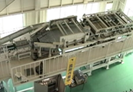 飲料工場の出荷梱包用に開発したのが、製品が詰められた段ボールをパレタイジング(箱詰めされた製品を決められた配置でパレットに積み上げること)する、高速カートンパレタイザーです。1分間あたり100ケースの処理能力を実現し、第35回中小企業センター賞を受賞しました。
